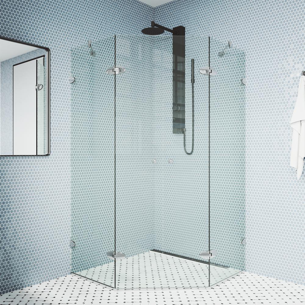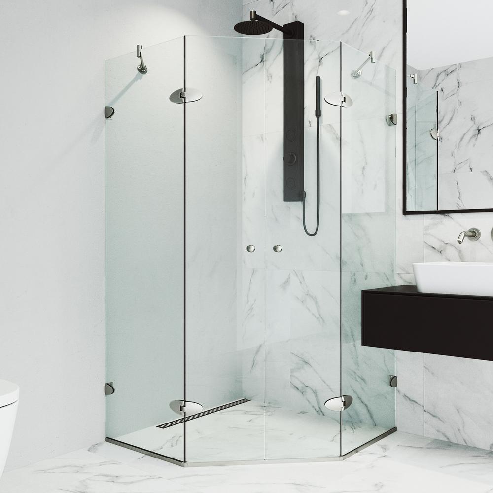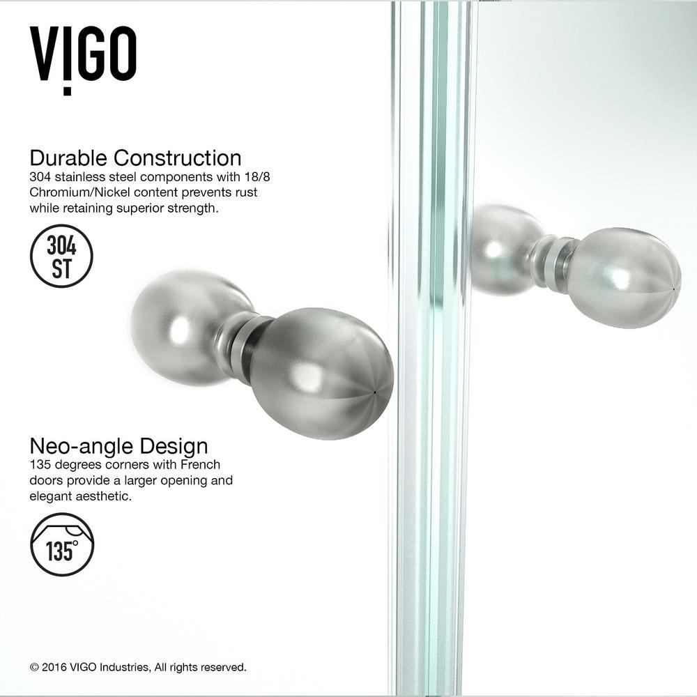 Easy access through central opening French doors makes the VIGO Gemini Frameless Neo-Angle Shower Enclosure a functional yet elegant statement piece in any modern bathroom. Stainless steel construction and 3/8" tempered glass ensures the shower enclosure's durability over time. With exclusive MagnaLock™ Technology to keep the door securely shut, this shower enclosure is sure to be a favorite for the long haul.