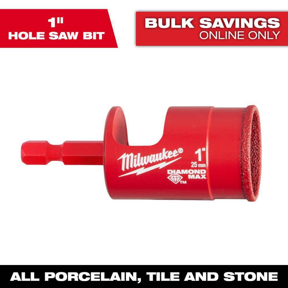 Milwaukee’s Diamond MAX hole saw delivers long life and fast cutting in tile, stone, and glass. The one-piece design with 1/4 in. hex shank requires no arbor and features a large slug-ejection slot for quick plug removal.