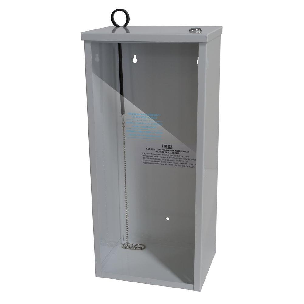 With its surface mount installation and included hammer and chain, this Steel Industrial Grade Fire Extinguisher Cabinet is the perfect addition to your home or office safety needs. The clear, tempered safety glass allows for you to see and maintain your stored fire extinguisher. The powder coated galvanized steel material is designed from the ground up to last.