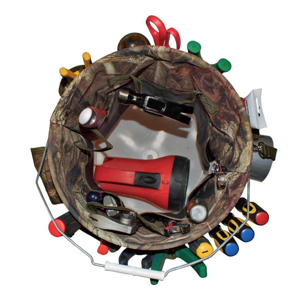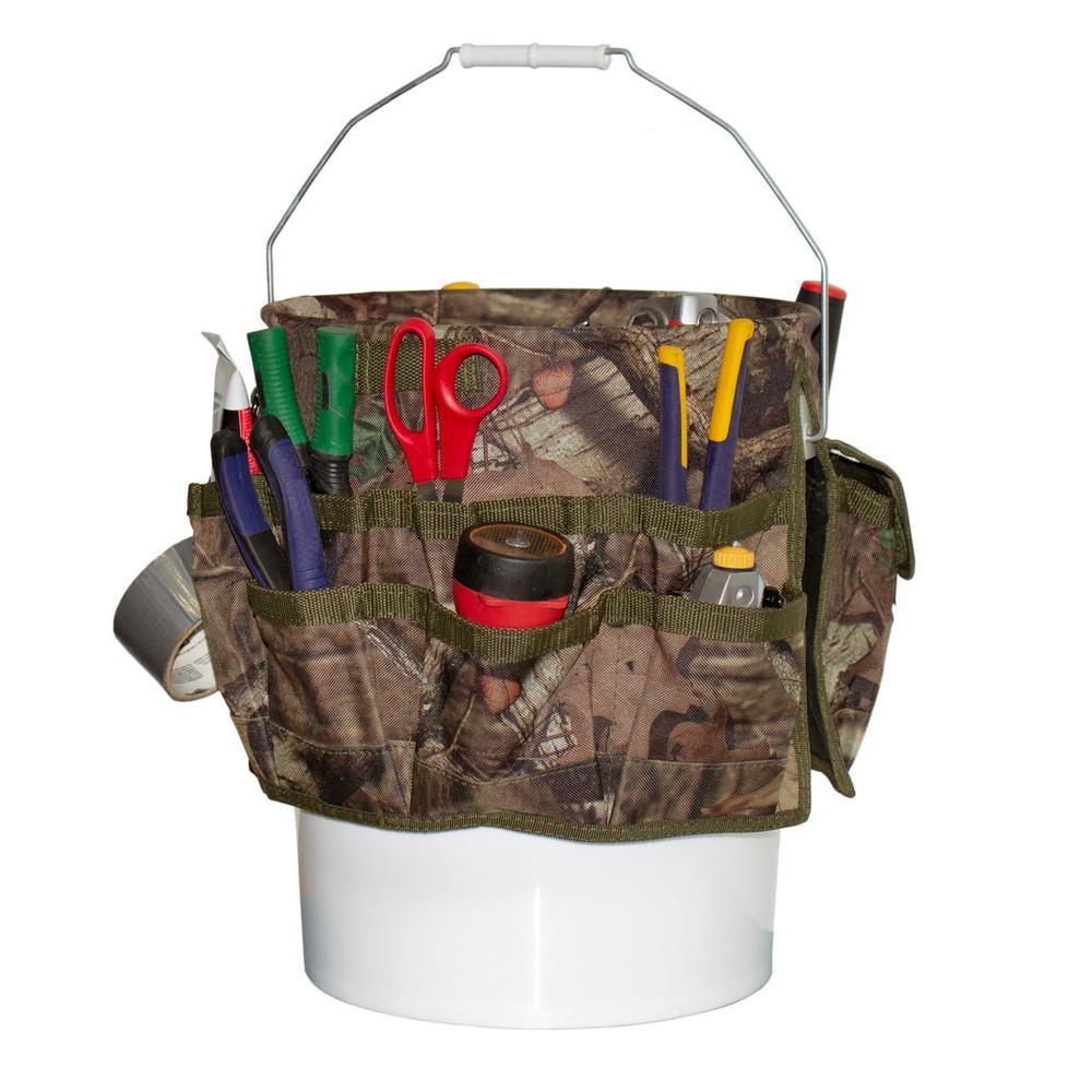 Bucket Boss introduced the first bucket tool organizer, the original "Bucket Boss", and still the standard today, in 1987. The Camo Bucketeer is that same revolutionary bag, only made from Mossy Oak® Break-Up Infinity camo fabric. Designed to fit any 5 gallon bucket, The Camo Bucketeer delivers instant organization with 30 pockets for tools and 3 interior loops for hammers and pry bars, all while keeping the bucket center open for bulk storage. Made of durable, water-resistant 600 denier poly ripstop fabric that will last for years, The Camo Bucketeer is a mobile, tool-organizing machine.