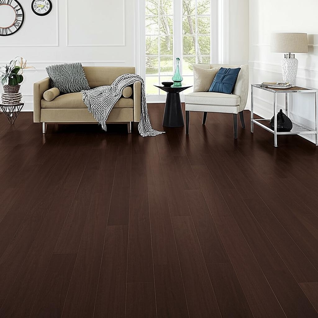Transform your living space with the rich, espresso tones of this strand-woven bamboo flooring. Its smooth finish and medium gloss create a sophisticated ambiance, perfect for modern or transitional interiors. Pair it with neutral furnishings and bold accents to highlight its natural beauty. This flooring is not just a surface; it's a statement of refined taste and sustainable luxury.