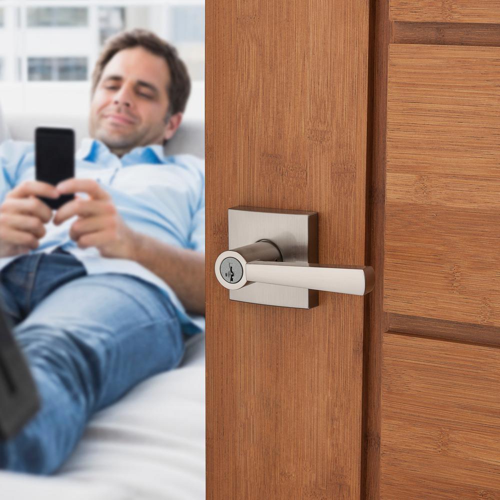 Prestige Spyglass Satin Nickel Keyed Universal Entry Door Lever Featuring SmartKey Security