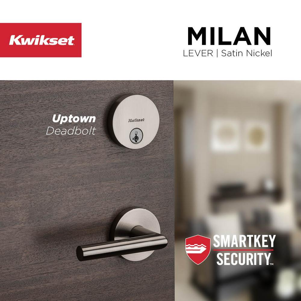 Step up to designer styles and superior security with Kwikset Signature Series products. A round contemporary lever, Milan's minimal style offers design for those interested in a playful, yet elegant aesthetic.A round contemporary lever, Milan's minimal style offers design for those interested in a playful, yet elegant aesthetic. This passage knob/lever is best used on interior hall and closet applications where no locking is required. The knob/lever is reversible and mounts on both left and right handed doors. The crisp, clean appearance of the Satin Nickel finish adds to the overall look of the product and brings a modern feel.