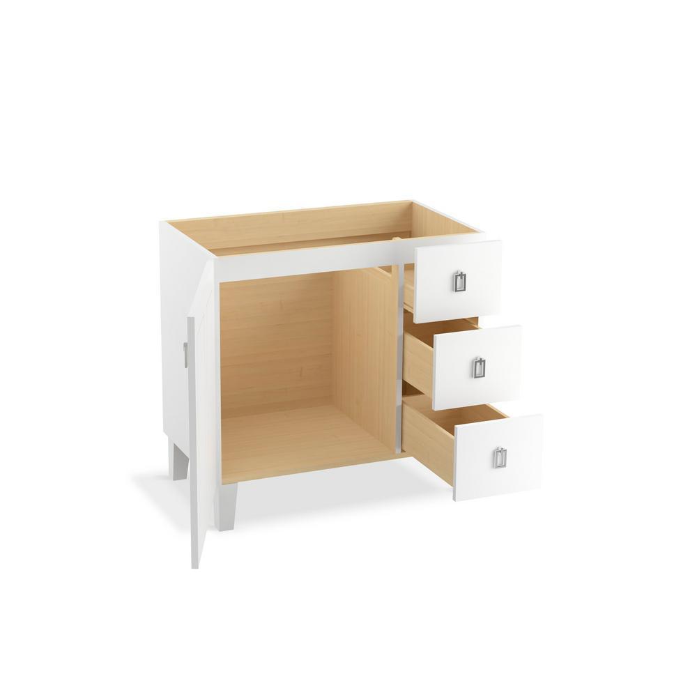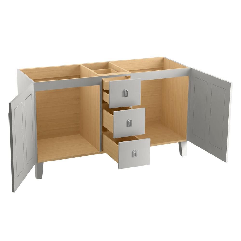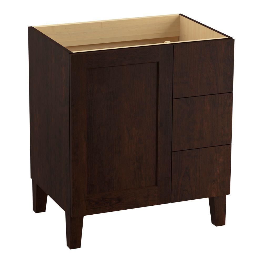 Breathtaking design meets unrivaled craftsmanship in the KOHLER Tailored vanity collection. No detail was overlooked in the meticulous crafting of this collection, from the premium hardwoods to the specially designed hardware and vanity tops, all available in an array of finishes to create your own look. This Poplin vanity draws its inspiration from Craftsman and Shaker furniture designs and features a prominent wood grain for a robust, rustic feel. Complete your vanity with a coordinating top, hardware and accessories from the collection.