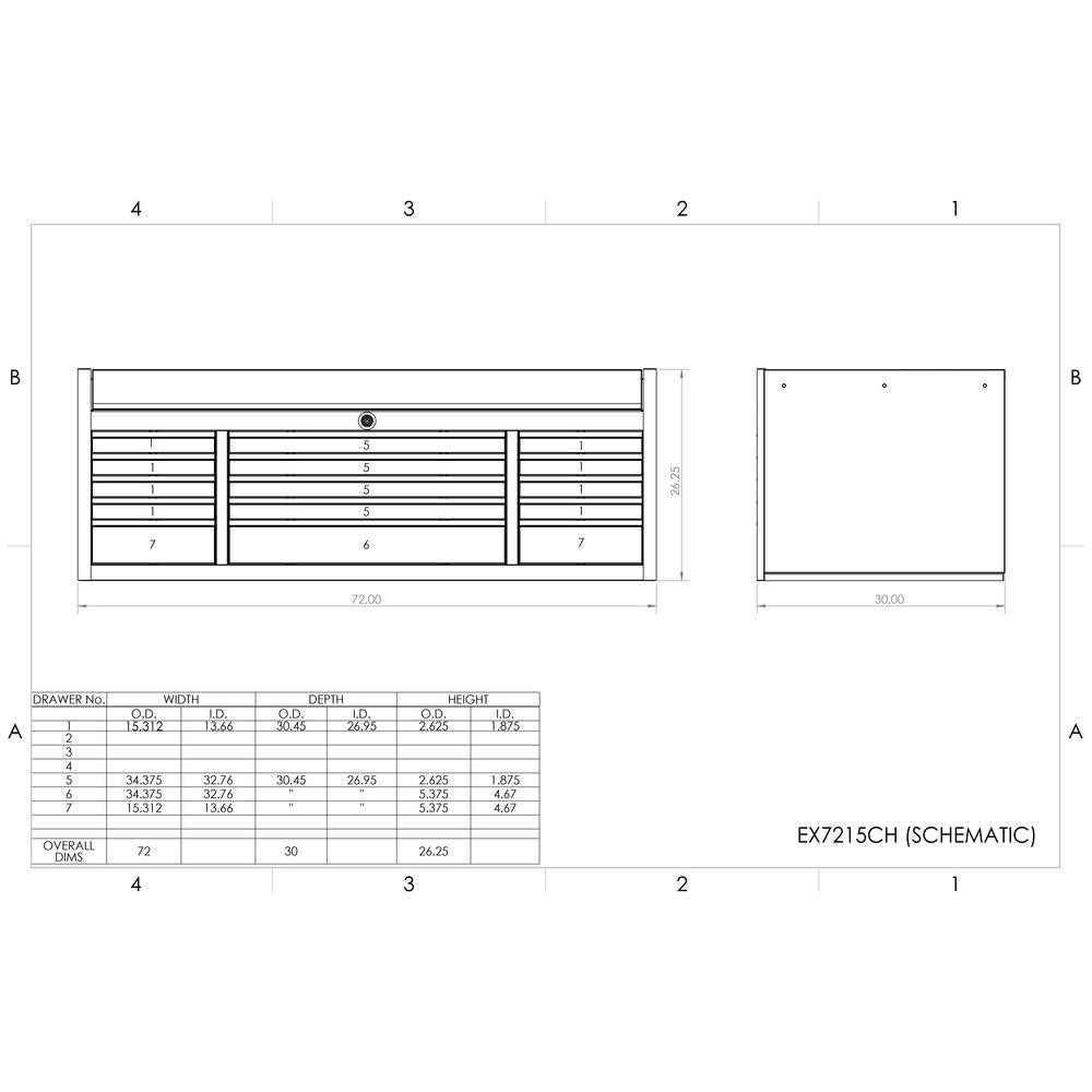 Designed with the master craftsman in mind, the Extreme Tools EX Professional 72 in. 15-Drawer Top Tool Chest in Blue has all your storage needs covered. Perfect for your garage or workshop, it is made with a 16-Gauge steel construction so it will provide increased durability. This tool storage system has a 95% high-gloss AKZO powder coat finish that features scratch, chemical stain and corrosion-resistant properties, which will protect against the elements and workshop accidents. It has a lid that features gas struts for improved safety when opening and closing. It has 15-drawers 10 small and 5 medium and features a total holding capacity of 23,613 cu. in., which offers plenty of storage for all your equipment. Designed to handle heavy loads, this Extreme Tools top tool chest features ball bearing slides that can hold up to 300 lbs., so you can easily access the contents of the unit. This top tool chest has a tubular coded lock and key system to offer you peace of mind. Redefine your tool and hardware storage with the Extreme Tools EX Professional 72 in. 15-Drawer Top Tool Chest in Blue.