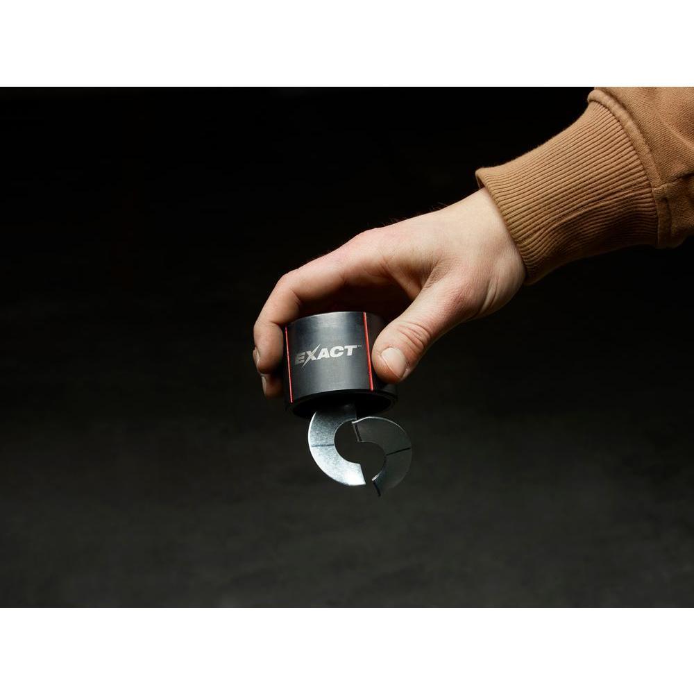 EXACT punches and dies provide innovative features that bring value for the contractor. The Heavy Duty accessories can punch holes in both mild and stainless steel material. Laser engraved crosshairs on the dies deliver the clearest alignment with pre-drawn crosshairs. Both the tooth geometry of the punches, and slug removal ports on the dies, provide optimal slug removal. Large size ID markings permit easy punch and die selection. EXACT punches and dies do not require spacer’s notches on the punches, which allows for a better grip during punch threading and de-threading.