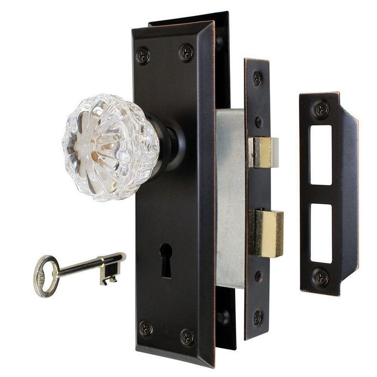 The Defiant 2 in. Victorian Glass Knob Mortise Lock Set is constructed from steel and comes finished in aged bronze. It is designed for left-handed or right-handed installation. The lock bolt is key-activated from either side.