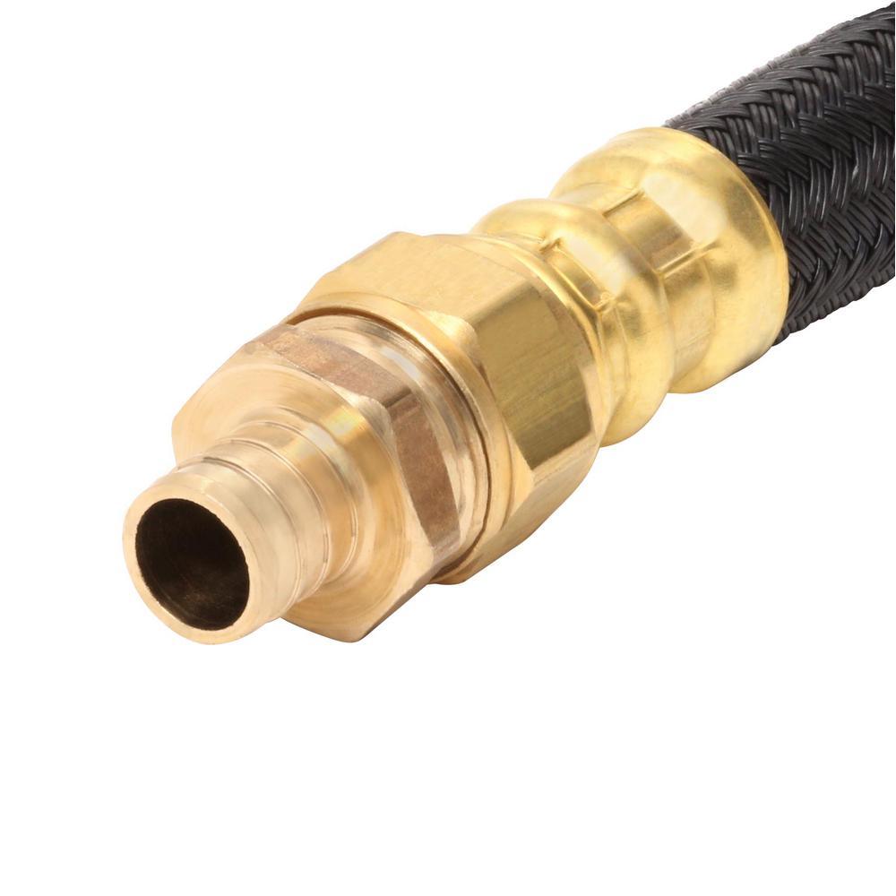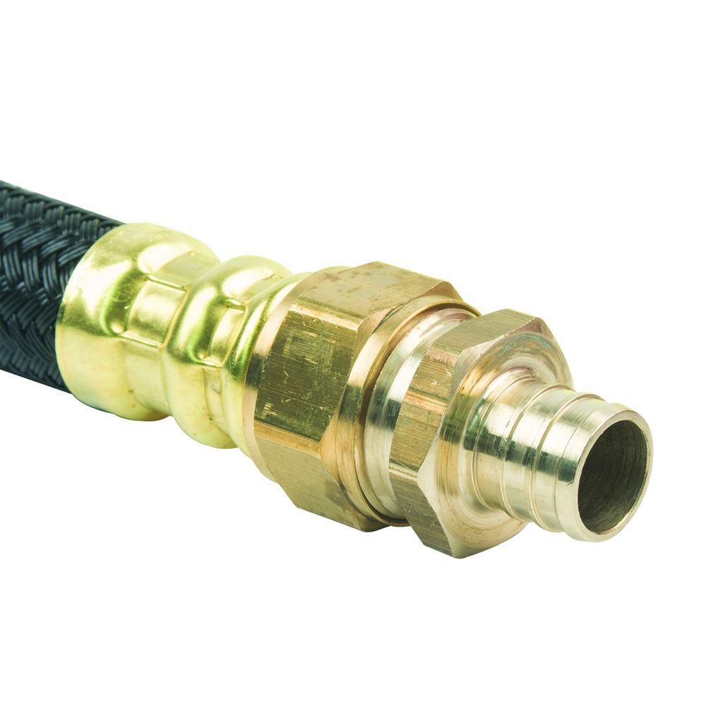 BrassCraft 3/4 in. FIP x 3/4 in. Nominal PEX Barb x 18 in. polymer braided water heater connector ( 0.57 in. I.D.), also known as Speedi Plumb PLUS connectors, combine advanced corrosion technologies with state-of-the-art manufacturing to provide the most flexible, corrosion resistant water heater connector available on the market today. Speedi Plumb PLUS patented polymer-braided jacket is specially engineered to be less abrasive and more flexible than the leading connectors. The polymer fibers bend freely without kinking, crimping or flattening, making installation easier, especially in cramped quarters. The braided jacket is also designed to resist corrosion from harsh household chemicals that can corrode and deteriorate stainless steel braiding. Polymer fibers are resistant to high temperature making them ideal for water heater connections. With a non-conductive polymer braid and EPDM rubber core, the absence of dissimilar metals within the waterway eliminates the potential for galvanic corrosion and the need for a dielectric union with the installation.