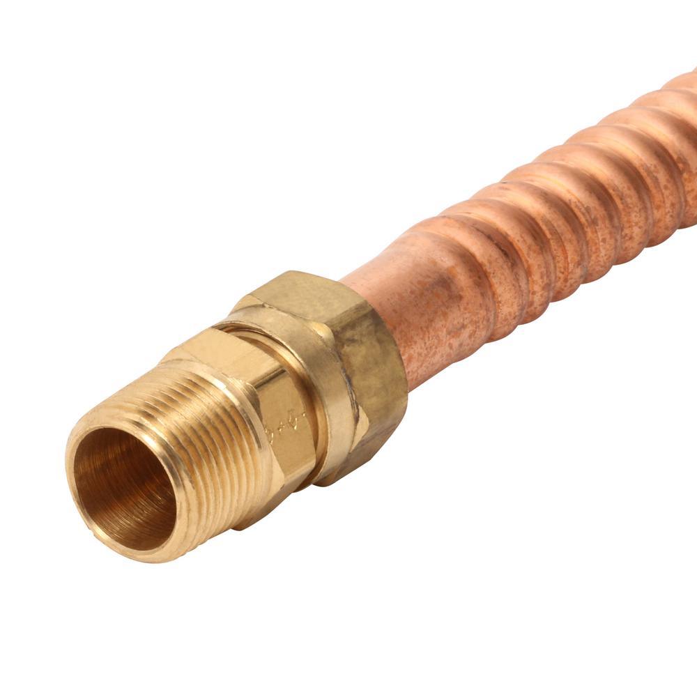 Corrosion is no match for BrassCraft’s COPPER-FLEX water heater connectors. Constructed of seamless copper tubing, COPPER-FLEX water heater connectors are the professional’s choice for water heater installations. Featuring an integrated dielectric sleeve, the sleeve isolates dissimilar metals within the waterway, where galvanic and electrolytic corrosion have their greatest potential. This separation provides complete protection against galvanic corrosion that can deteriorate the connector and cause leaks. In addition, the integrated dielectric sleeve eliminates the need to install an additional dielectric union, reducing time and installation costs.