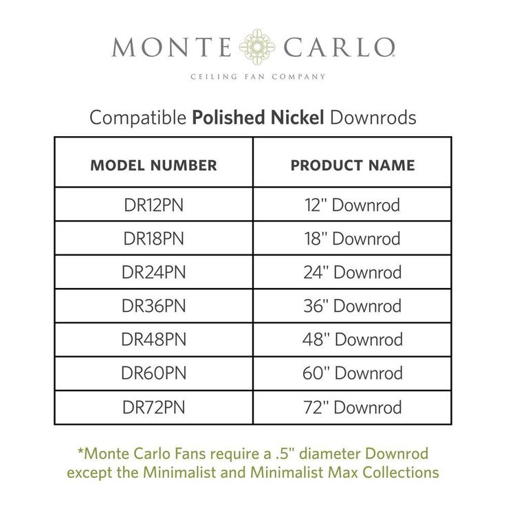 The Monte Carlo extension down rod offers added flexibility in placing fans in the exact setting desired. This decorative 1/2 inch diameter down rod comes with pre-drilled holes on both ends. For Optimum performance, we recommend that your ceiling fan be installed with the blades suspended 7 ft. to 9 ft. above the floor