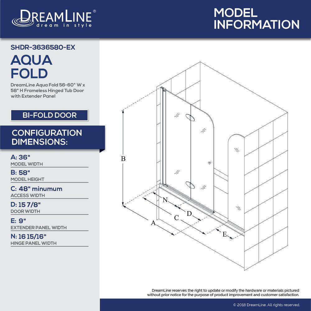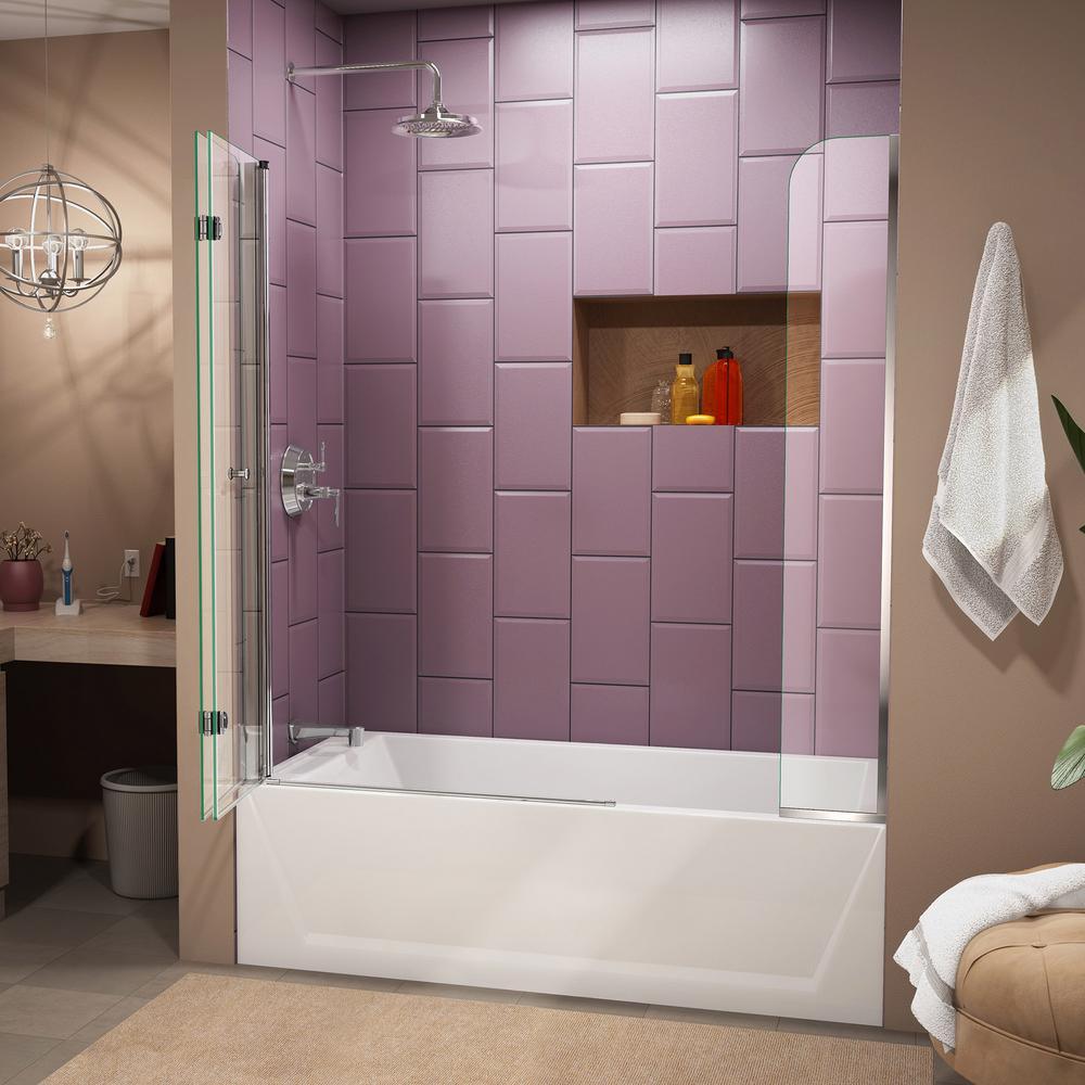 The Aqua Fold Tub Door with Extender Panel is the perfect combination of function and style. The door makes a statement with a sophisticated curved silhouette, while the practical feature of the bi-fold action offers convenience. The Extender Panel provides additional splash coverage. Choose the Aqua Fold Tub Door with Extender Panel for a unique and modern look at an attractive price point.