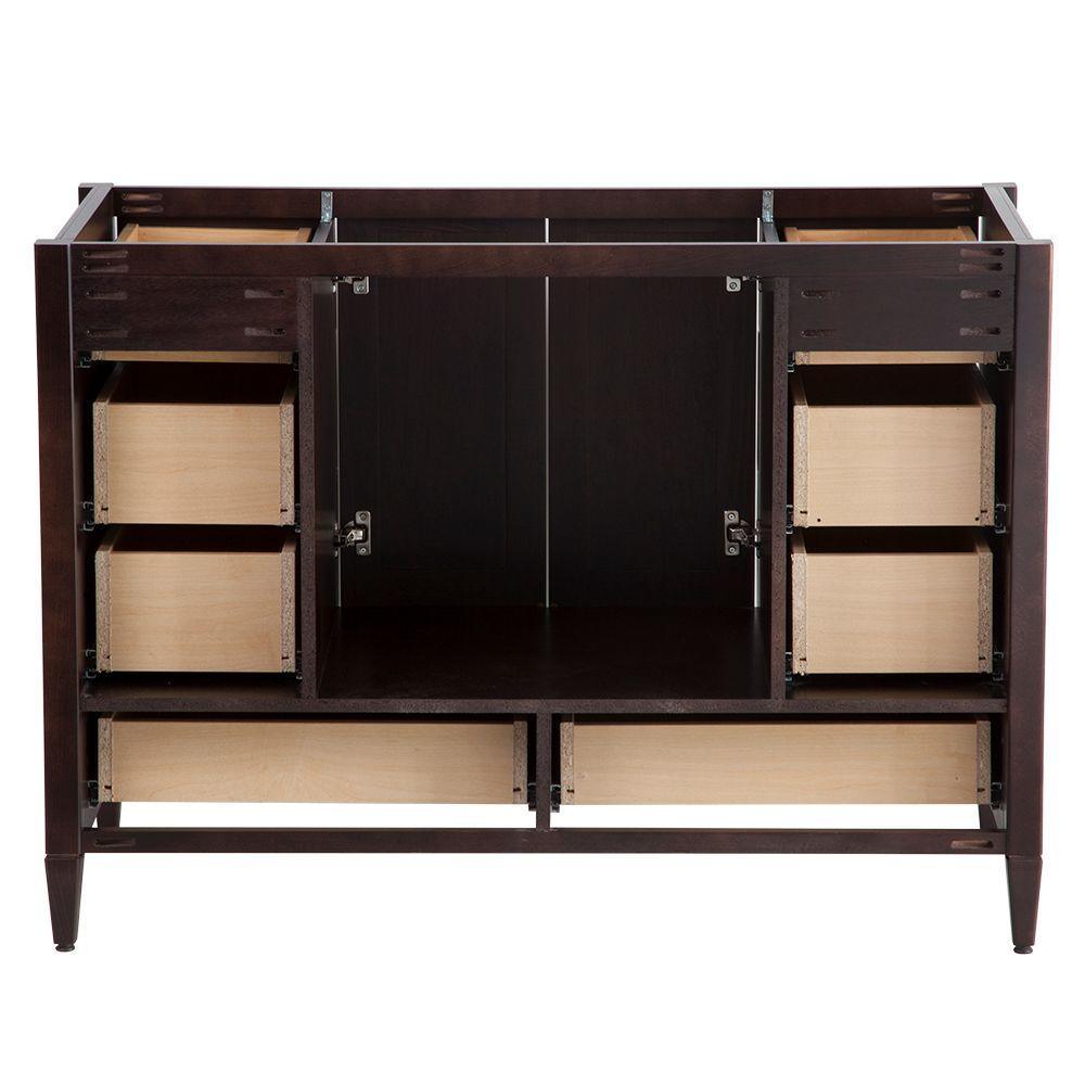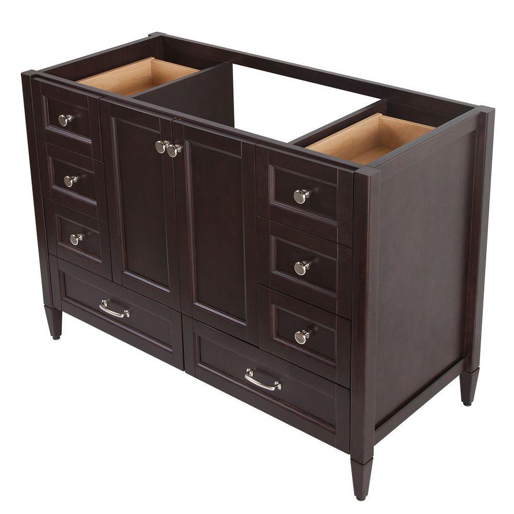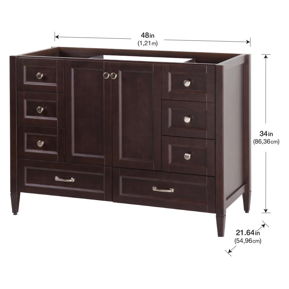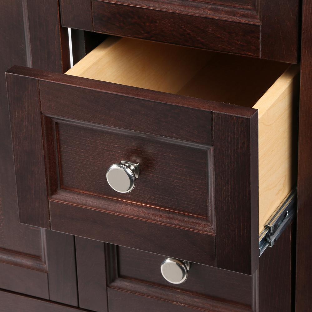 Beautifully crafted, the furniture style Claxby Collection will bring elegance and style to any bathroom. Featuring six working drawers and two large bottom drawers that provide ample storage for all of your bath essentials. Finished in a rich chocolate and accented with chrome cabinet hardware, the 36 in. Claxby vanity is a perfect fit for any bath.