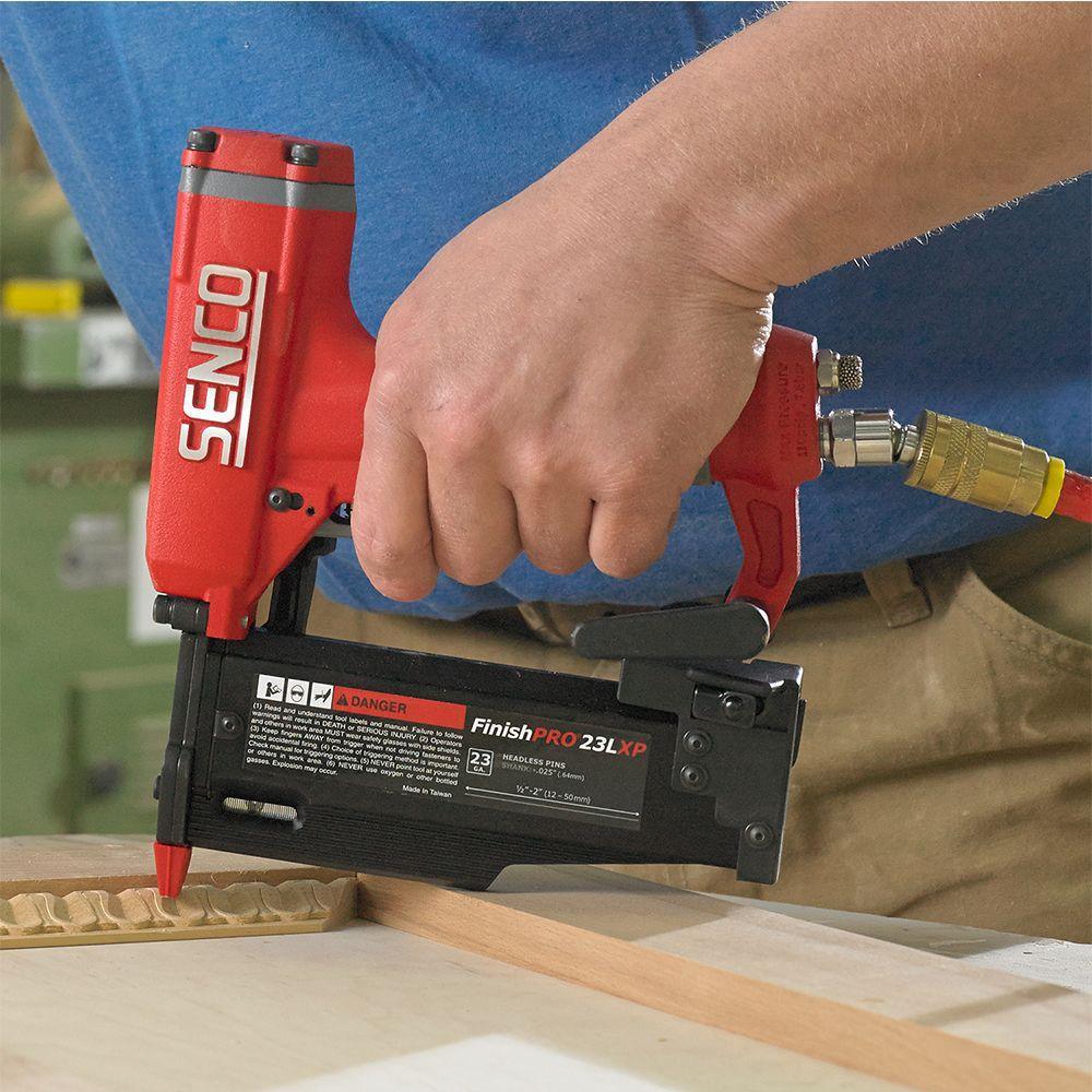 The FinishPro 23LXP is an industrial strength headless pin nailer that is perfect for intricate finish and trim work. The headless pins drive without splitting and require no touch up work. Has rear exhaust with embedded muffler. Last nail lock-out prevents dry-firing.