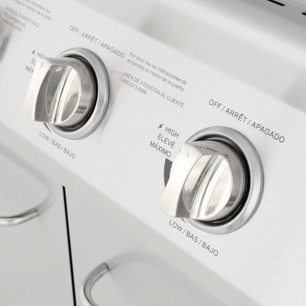 4 stainless steel main burners (12,000 BTUs each) are durable and distribute heat well for even cooking