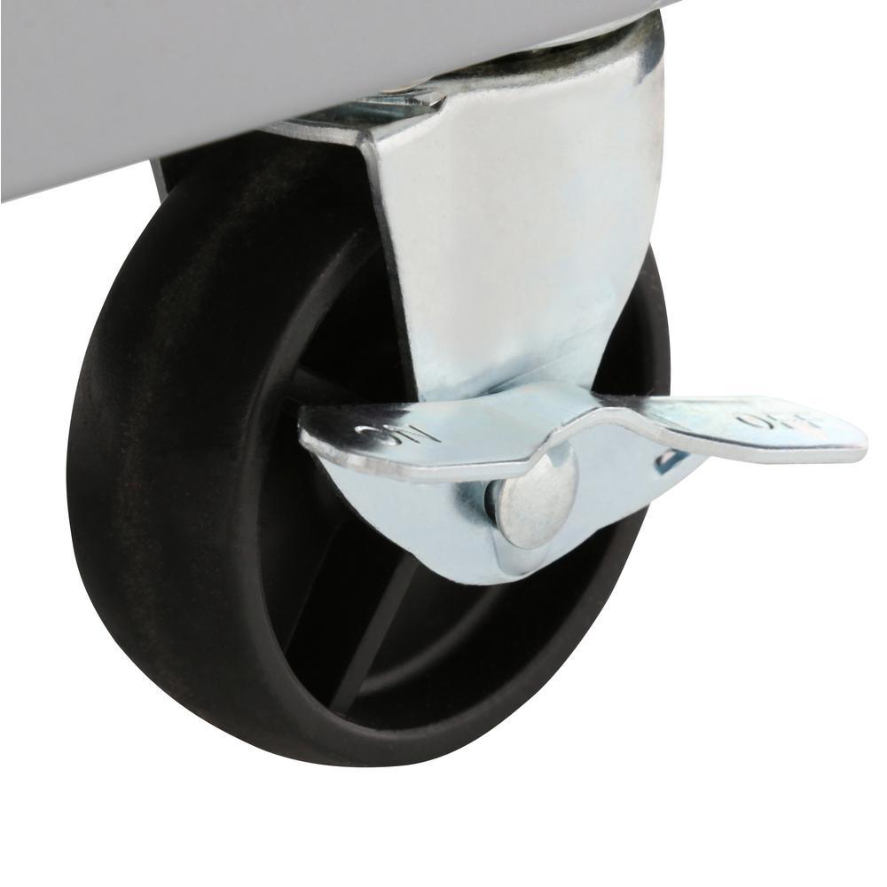 Includes locking casters with crack-proof, all-weather wheels to withstand harsh environs
