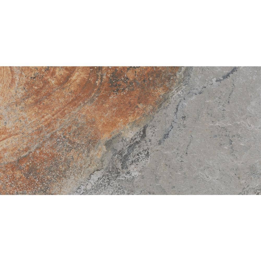 VitaElegante Ardesia ushers in the moody romance of time-worn slate—burnished rust, graphite, and misty gray—rendered in resilient porcelain. The generous 12x24 format elongates a room and creates a luxurious, gallery-like stride. Pair it with crisp white cabinetry and brushed nickel for a tailored contrast, or echo its warmth with walnut accents. It’s a sophisticated foundation that makes everyday living feel decidedly elevated.
