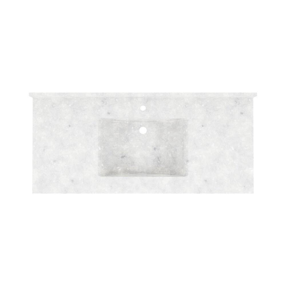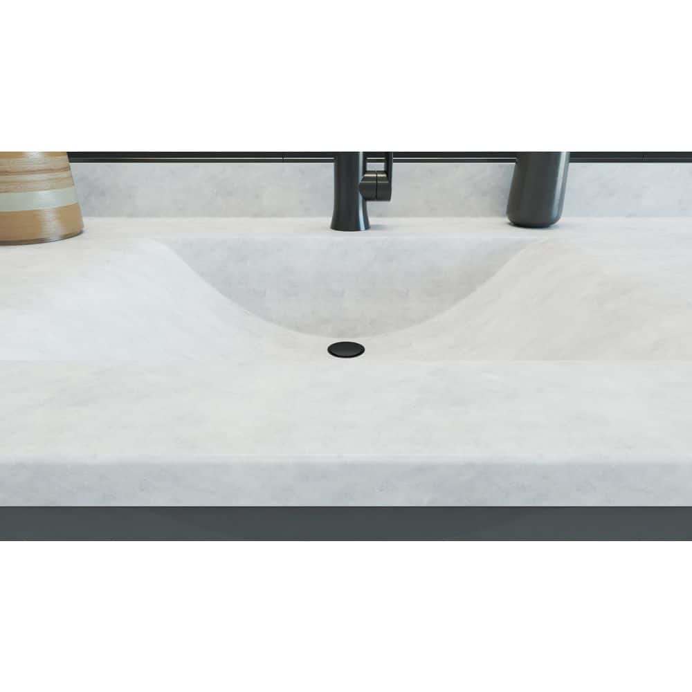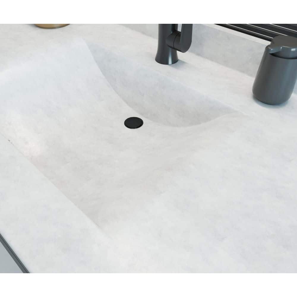 This vanity top casts a tranquil glow with its Ice finish, melting seamlessly into a graceful, integrated basin. The subtle sweep of the bowl and slender backsplash feel tailored and modern, a refined counterpoint to bold hardware. Pair it with matte black or brushed nickel fixtures and a linear mirror to let its quiet texture sing. A timeless layer of luxury, it anchors the bath with effortless sophistication.