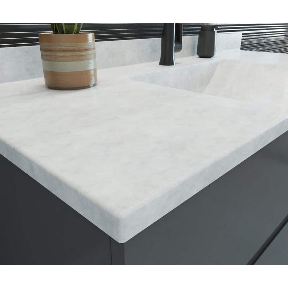 - Sized for 48 in. Vanities: 49 in. W x 22 in. D top provides ample counter space in a contemporary matte finish