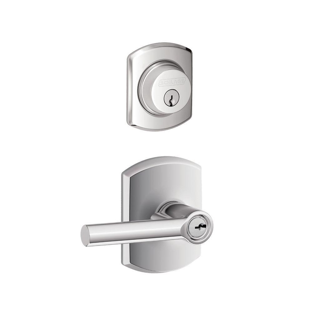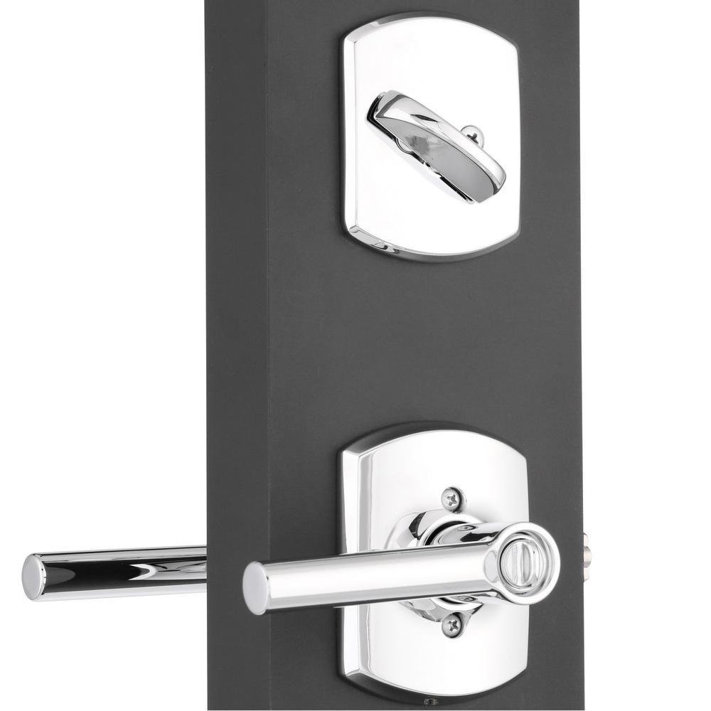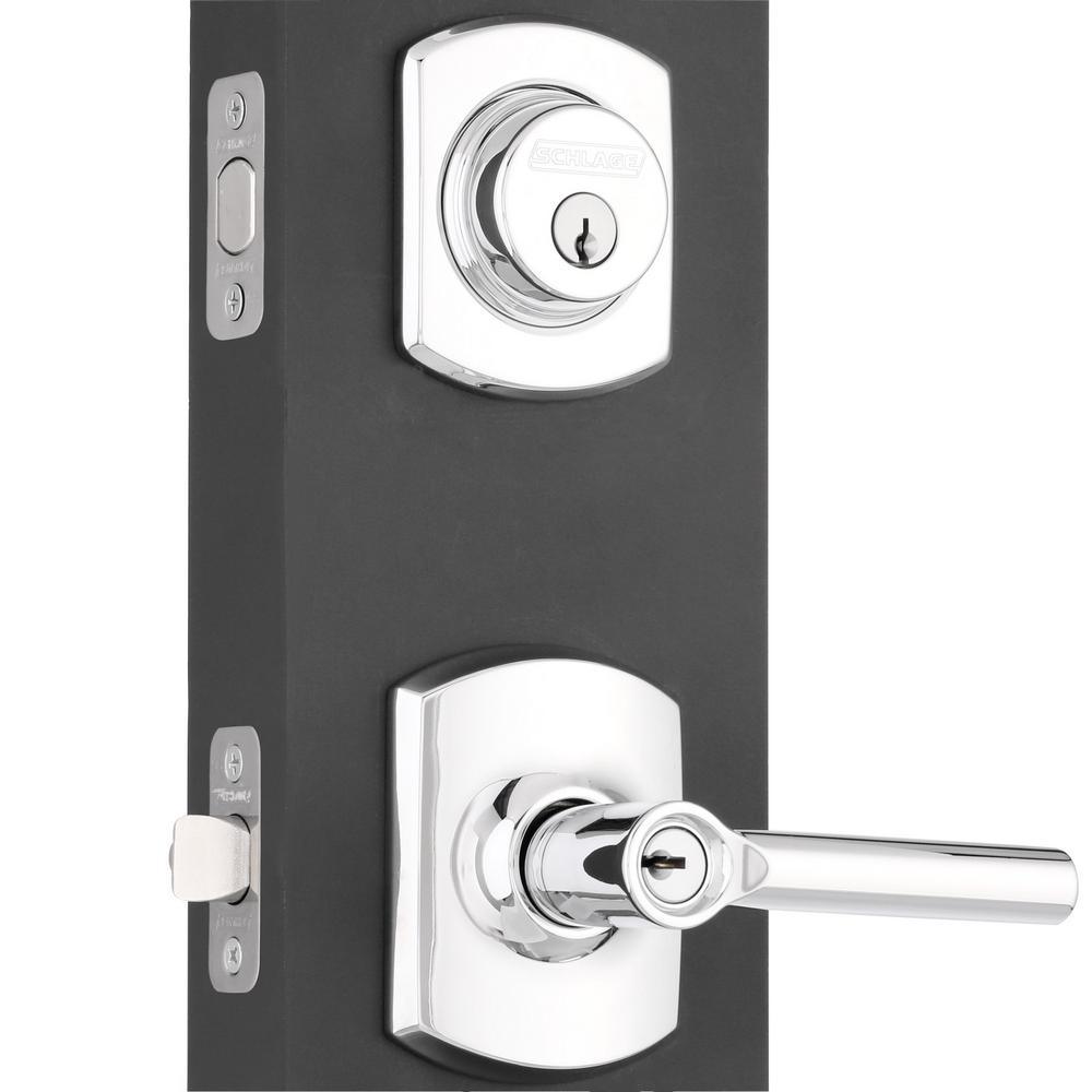 The Schlage Greenwich Bright Chrome Single Cylinder Deadbolt with Broadway Entry Door Lever Combo Pack is perfect for use on exterior doors where extra security is needed. The minimal, tubular design of the Broadway lever offers a tastefully reserved yet high-style look, and the Greenwich Trim’s simple and chic. When finished in mirror-like Bright Chrome, the deadbolt adds a touch of drama. The lever unlocks when the door is opened from the inside, allowing you to leave quickly and conveniently and re-enter easily. Plus, it was designed and tested with strength and durability in mind.