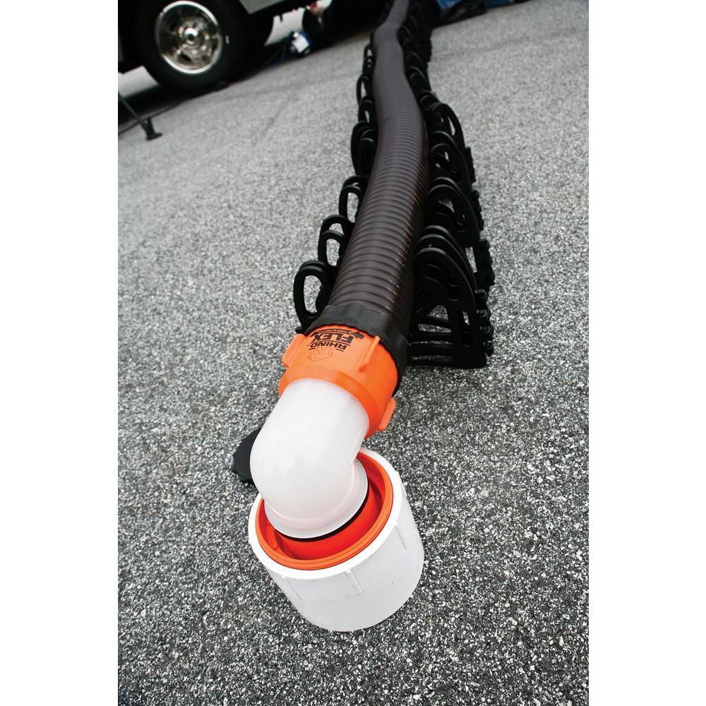 - Includes RhinoFLEX sewer hose, swivel bayonet adapter, 4-in-1 translucent elbow, 2 locking rings and 2 storage caps