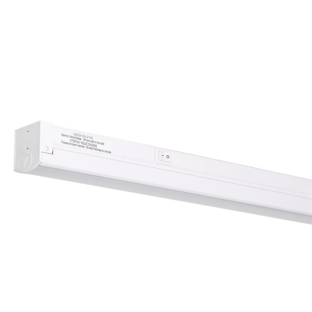 The 4 ft. LED Linkable Strip from Lithonia Lighting is suitable for surface mount applications. This fixture includes an end to end connector so you can connect additional Linkable strips. An 18 in. linking cord is sold separately if you want to space out multiple fixtures and link them all together. Other accessories (sold separately) for this fixture include a 5 ft. power cord and J-box cover. On/Off rocker switch is on the fixture as well. This fixture has integrated LED's built into the fixture, meaning no bulbs required and have a 50,000 hour life. Ideal applications for this Linkable strip are coves, under cabinets, garages, utility rooms, offices and home theaters.