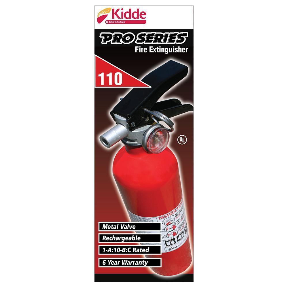 Having a fire extinguisher within reach can help you create a path to safety, and may even help put out a small, contained fire. This Kidde Pro 110 fire extinguisher is UL rated 1-A, 10-B:C and is ideal for the most common fires. This rechargeable fire extinguisher is suitable for use on the most common fires.