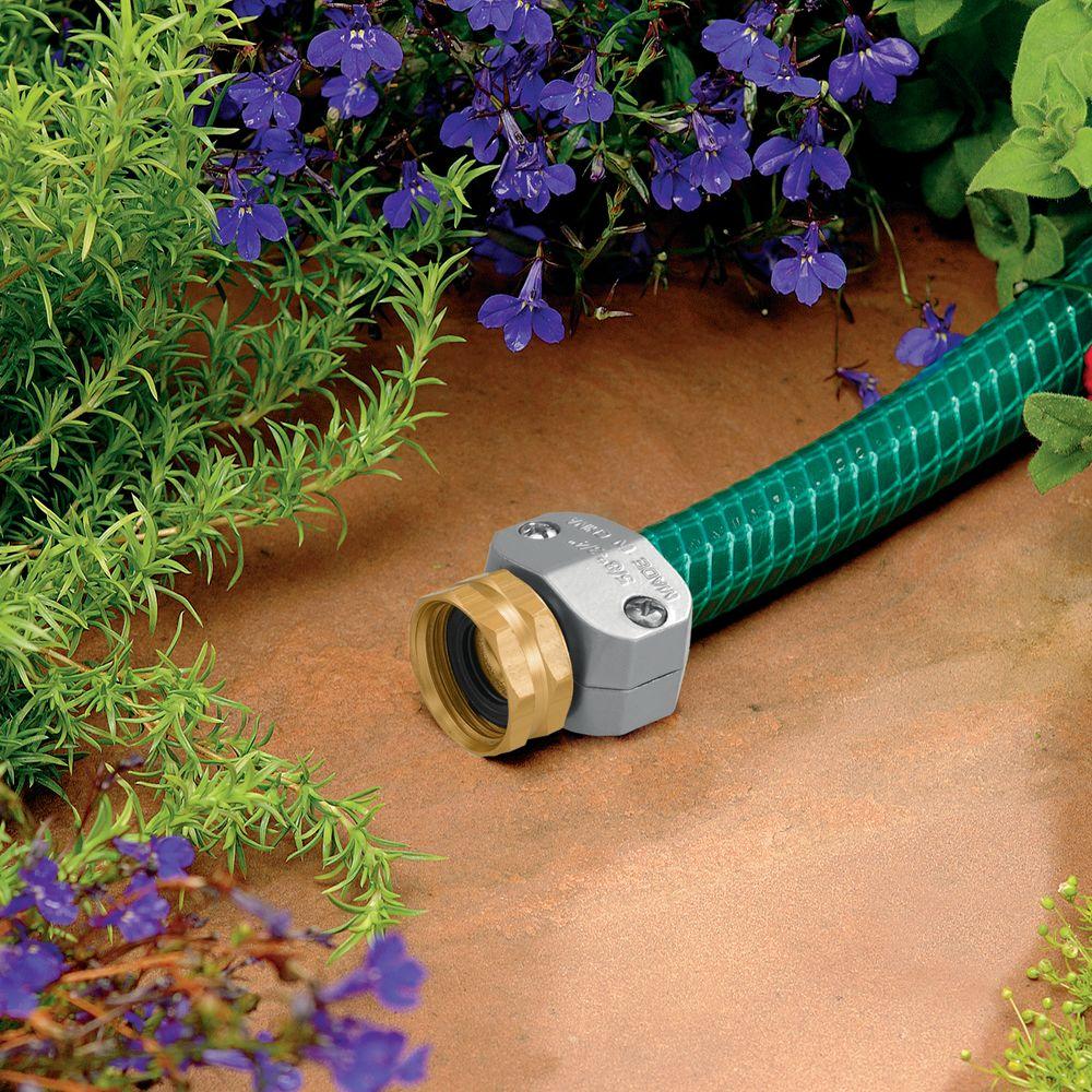 This product is expertly designed to replace the nozzle end of a regular garden hose. Its heavy-duty metal build effectively shields against corrosion and extends the lifespan of the hose. The tapered design makes installation a breeze with minimal effort. Suitable for 5/8 in. to 3/4 in. hoses.