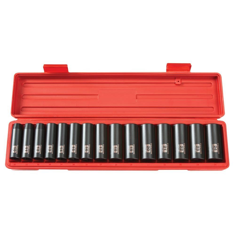 - Set Includes: 15-piece 1/2 in. drive sockets (metric): 10, 11, 12, 13, 14, 15, 16, 17, 18, 19, 20, 21, 22, 23, 24 mm