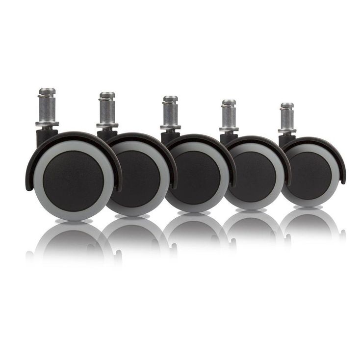 Get full swivel action and floor protection without the need for big plastic floor mats. These rubber casters are the office wheels of the future. Perfect set of 5 replacement caster wheels for office chairs with hard plastic wheels. Scratches, scuffs, stuck wheels and noisy squeaks will be a thing of the past with these rubber caster wheels on your chair. Install them quickly and easily (no tools required) simply pull off the old and snap in the new and you're ready for sturdy support and stylish presentation a set of 5 caster wheels can offer. Designed to hold a maximum of 66 lbs. each or 330 lbs. total weight chair and rider.