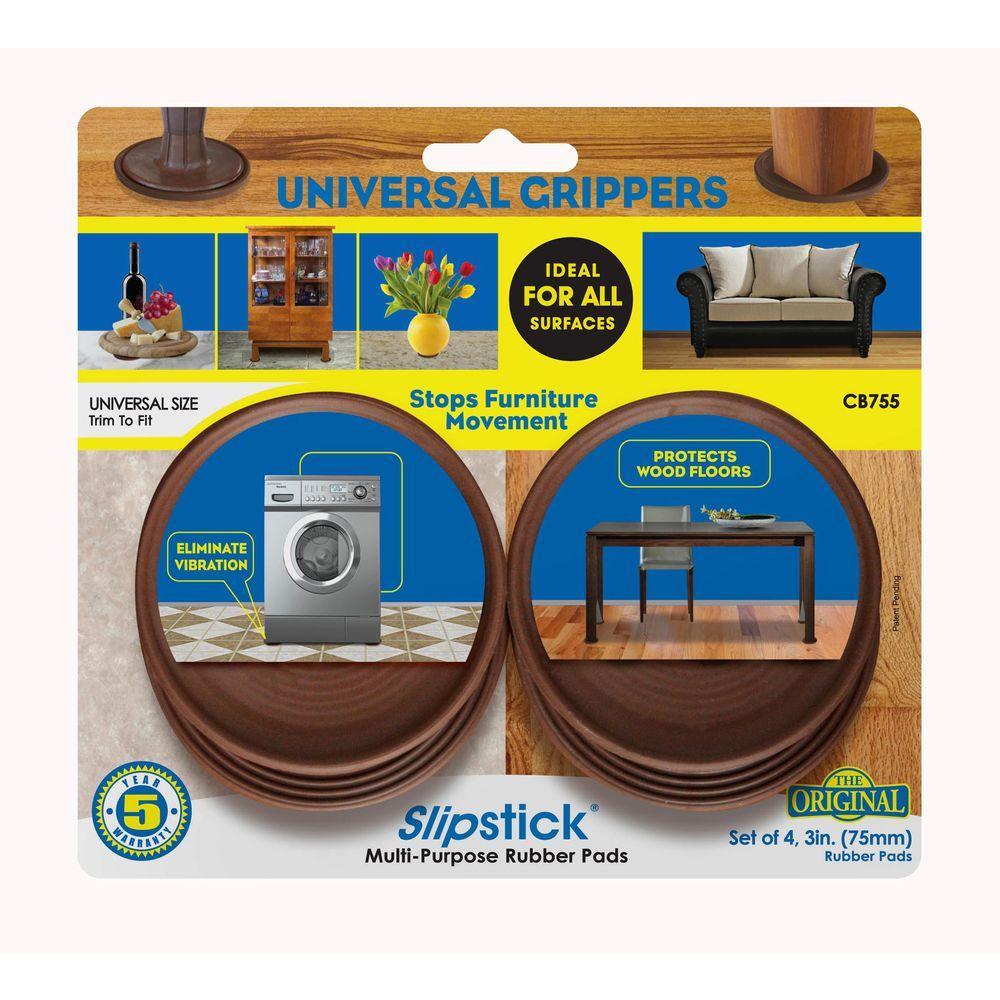 Package contains 4 universal chocolate brown round grippers that can be trimmed to fit