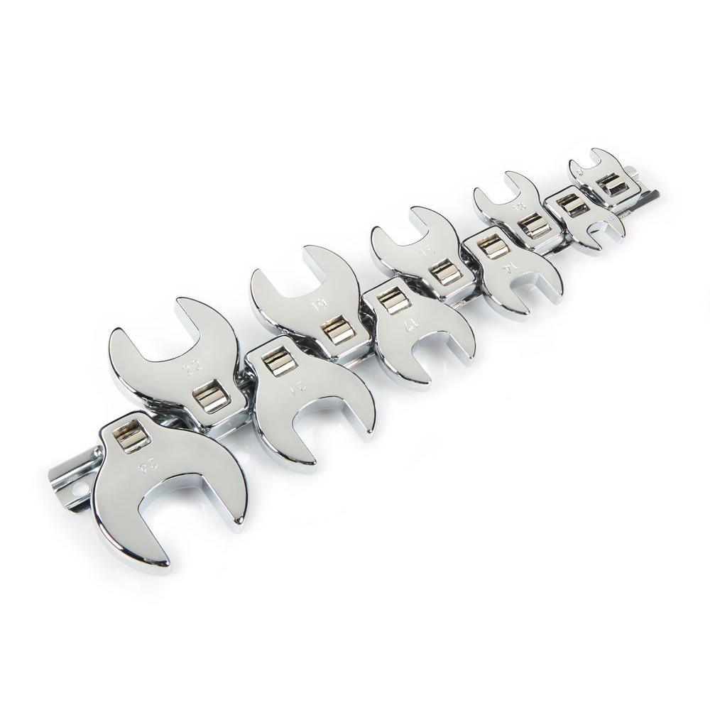 • 10-pc. 3/8 in. drive crowfoot wrenches: 10, 11, 13, 14, 15, 17, 19, 21, 22, 24 mm
