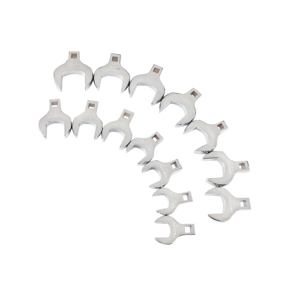Set includes: 14-piece 1/2 in. drive crowfoot wrenches (in.): 1-1/16, 1-1/8, 1-3/16, 1-1/4, 1-5/16, 1-3/8, 1-7/16, 1-1/2, 1-5/8, 1-11/16, 1-3/4, 1-13/16, 1-7/8, 2 in.