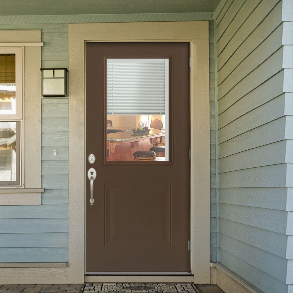 Upgrade your entry with this durable, prehung steel door featuring integrated mini blinds—order now for a quick, stylish install.