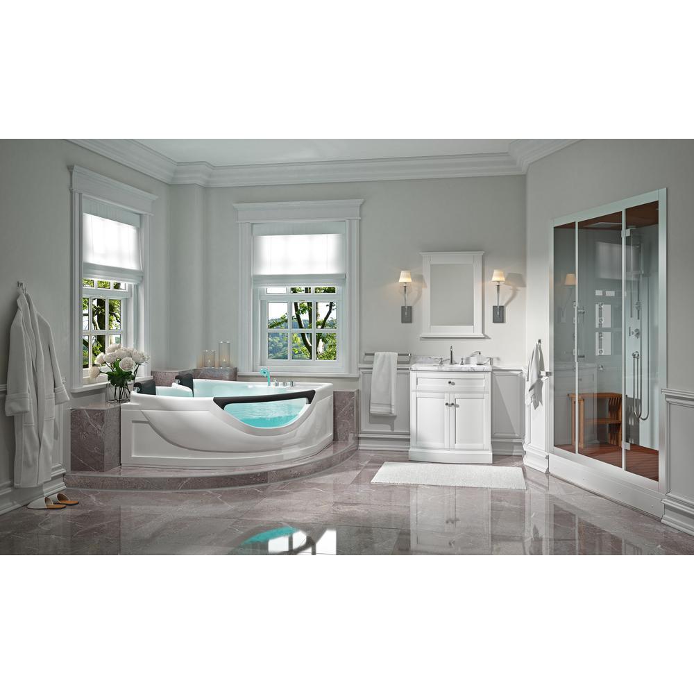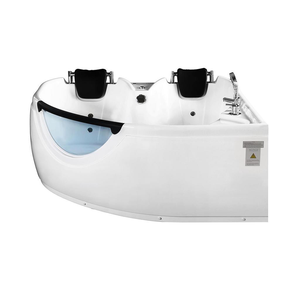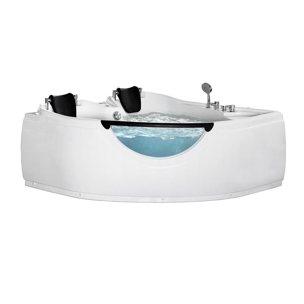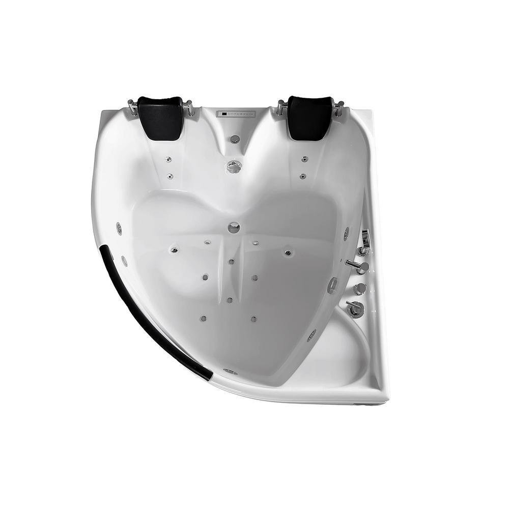 60 in. Center Drain Corner Alcove Whirlpool Bathtub in White
