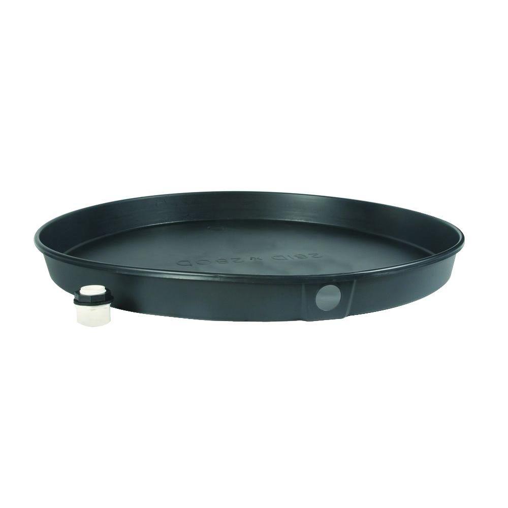 This water heater drain pan is made from crack-resistant, injection-molded polypropylene for increased strength and durability. Use this pan under a water heater to prevent damage from water heater leaks or temperature and pressure valve-released condensation runoff. This drain pan is for use with electric water heaters only. PVC fitting is included.