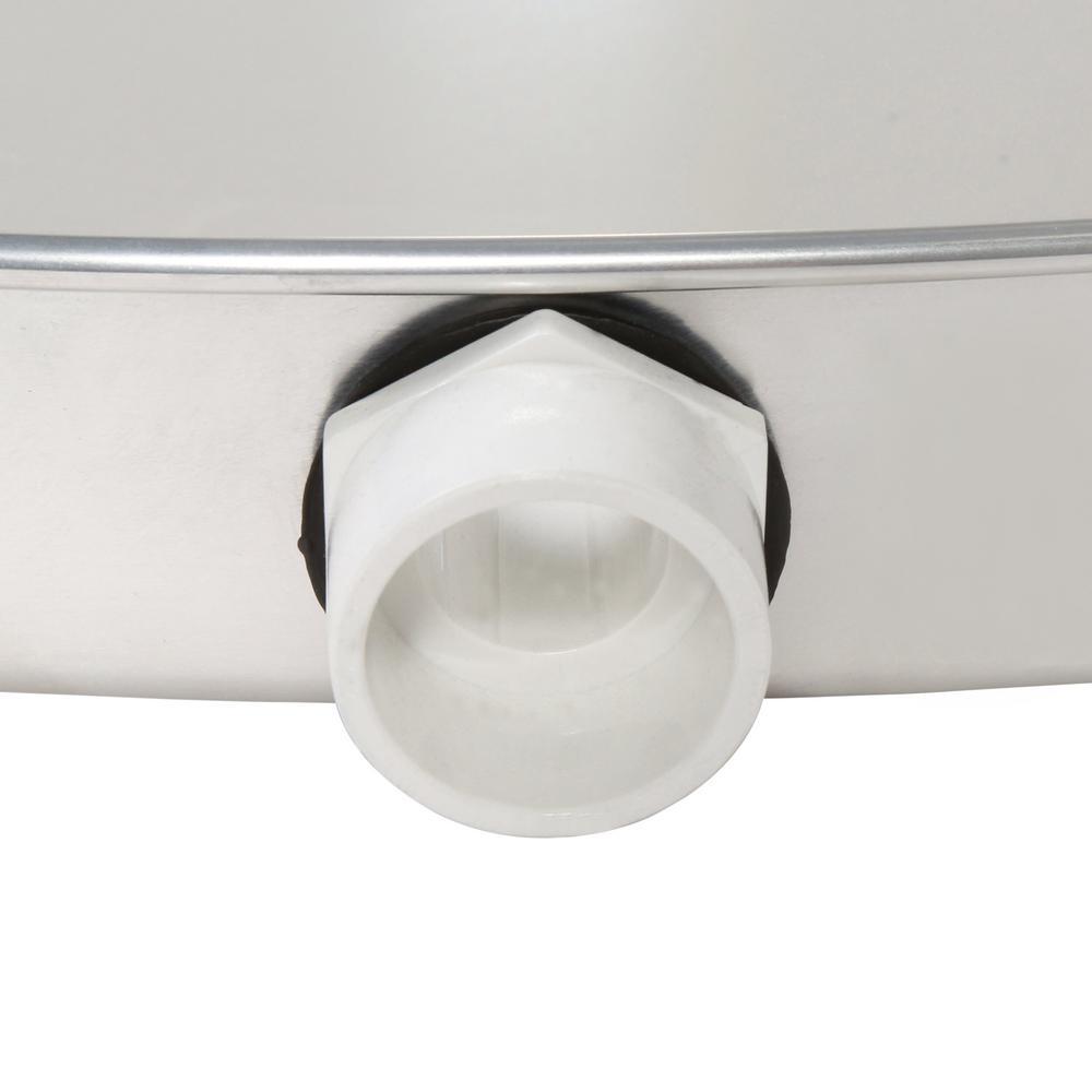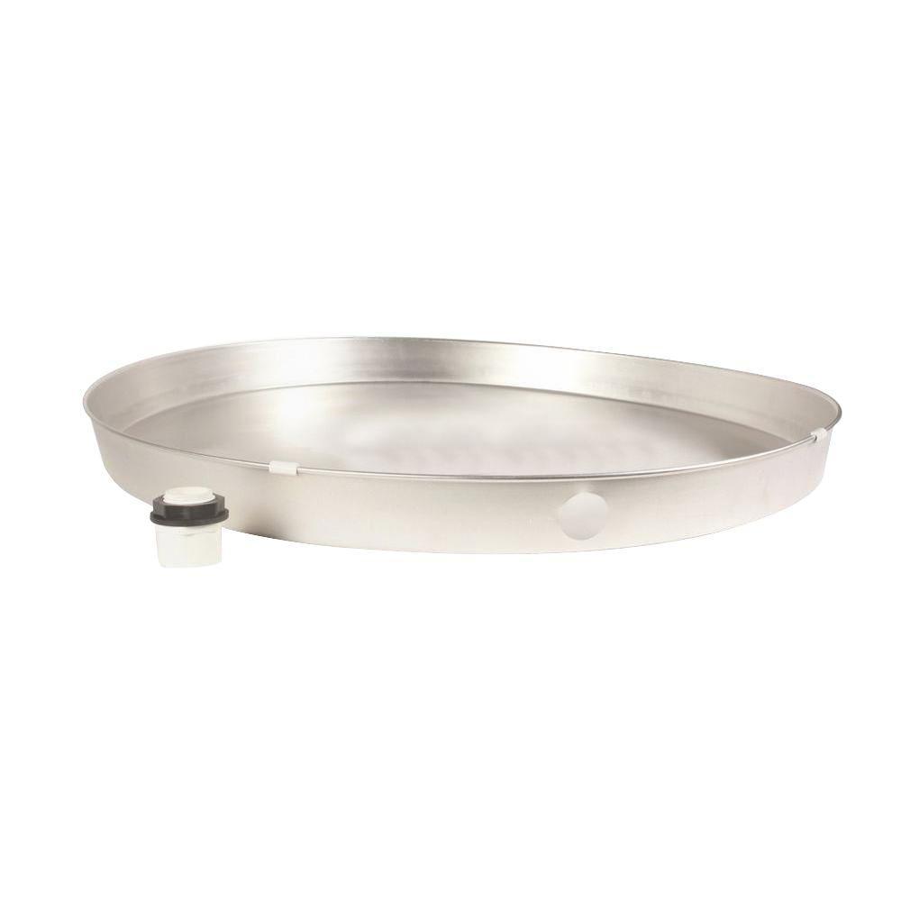 This 30 in. aluminum drain pan is installed under a water heater to protect finished surfaces in case of a water heater leak or T and P valve activation. Its sturdy aluminum construction resists cracking and rusting and can be used under either a gas or electric water heater. Drain fitting is included.