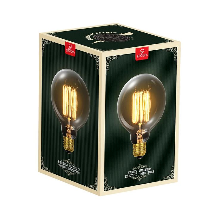 Globe Electric's vintage designer 60W Vintage Edison G30 Tungsten Incandescent Filament Vanity Light Bulb is a perfect way to add style and pizzazz to your home. The exposed tungsten filament is used to reproduce the single hairpin loop of a vintage Edison design and is ideal for architectural restoration projects, conceptual space or to bring a vintage touch to any room. Since the squirrel cage filament emits a soft warm glow, these bulbs work great as an accent or mood light. Pair it with a clear shade or exposed socket fixture to enjoy its ambient glow. The round shape of the G30 bulb works beautifully to create a vintage style work of art out of any exposed socket fixture. This bulb has a standard medium E26 base and is recommended for exposed socket fixtures.