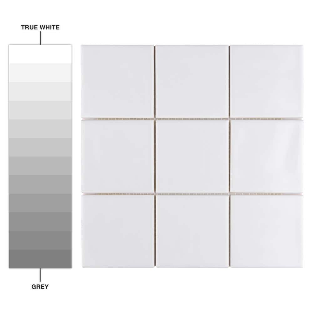 A glossy white ceramic mosaic designed for interior walls and backsplashes, Twist Square White Ice brings a modern take on classic square tile. Mesh-mounted 11-3/4 in. x 11-3/4 in. sheets with subtle undulation create a luminous, timeless surface that installs easily and pairs with any style.