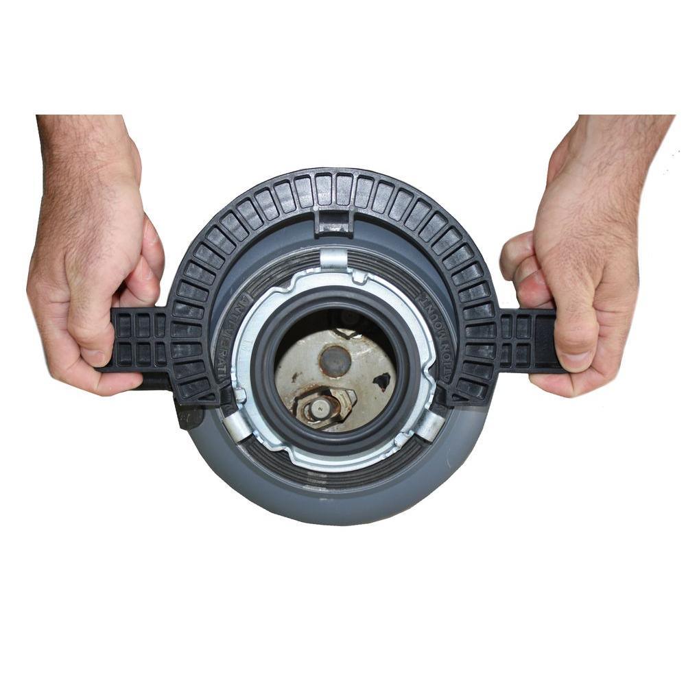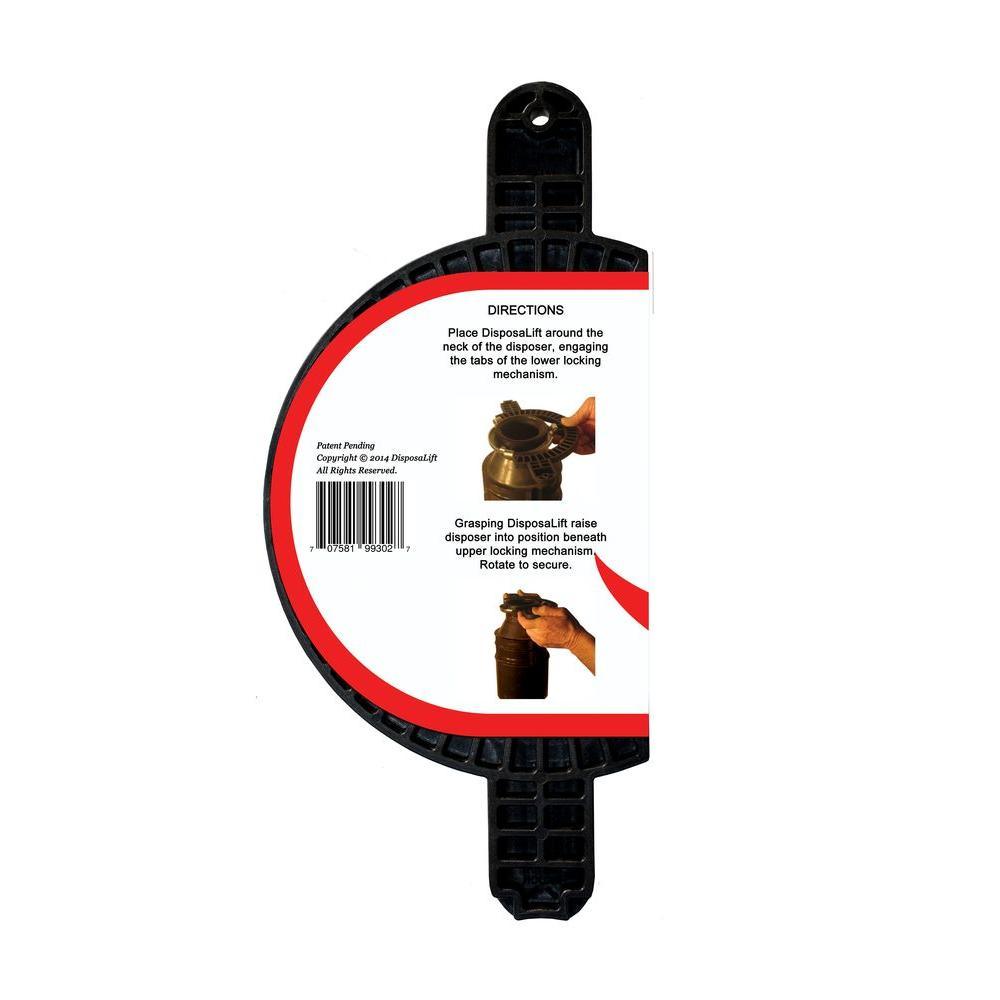 Install and remove your 3-tab locking ring garbage disposer with the DisposaLift 12 in. x 5.5 in. x 0.5 in. tool. This durable wrench features 3 perfectly aligned tab holders and opposing handles to ensure installation is as simple as lift and twist. The sleek design provides for maximum balance, control and torque in the tightest under sink positions. Additional feature includes split ring assist.