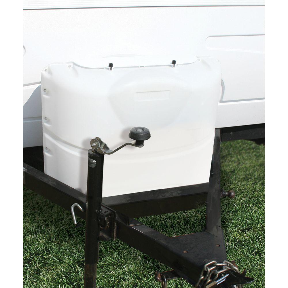 Camco's Polar White RV Heavy Duty Dual Propane Tank Cover is made of heavy-duty polypropylene. It protects propane gas bottles from flying debris while streamlining the look of your rig. It is easy to assemble, in about 15 minutes, with the supplied hardware. The updated design provides easier access to gas valves and changeover valves.
