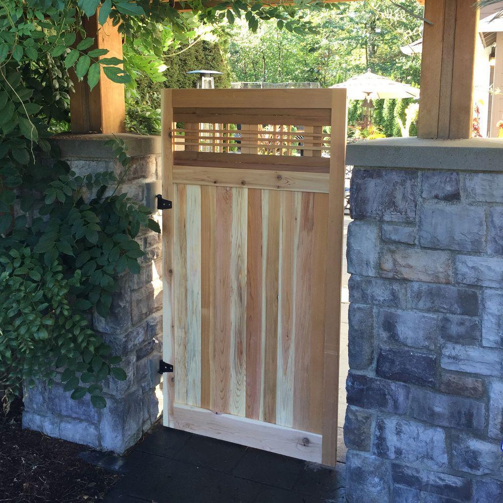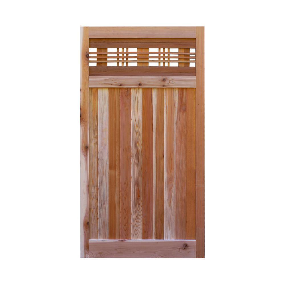 Experience the aroma and long lasting beauty of a Western red cedar fence gate. Cedar gives a feeling of warmth and compliments the natural surroundings, while adding charm to your outdoor living space. Well known for its natural oils, western red cedar resists decay and withstands harsh environments. Constructed with the highest quality, hand selected Western red cedar featuring a flat top horizontal lattice design. Its structure is stable, durable, and ready to withstand the elements for years of quality performance. This gate is manufactured using corrosion-resistant fasteners and features tongue-and-groove milled fence boards to help provide privacy. Easy to install and used for many applications residential or commercial. Hinges can be installed on the right or left side. Cedar fence gates are the perfect addition to your fence or arbor project.