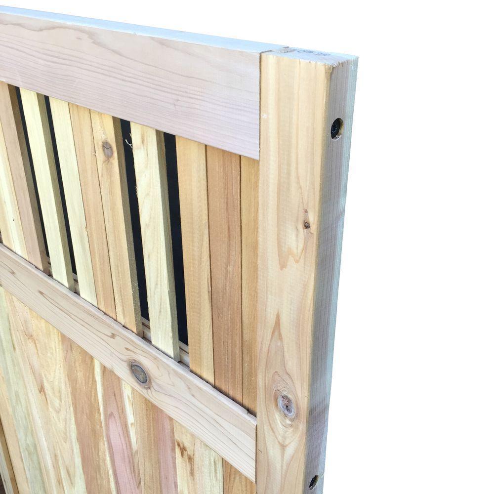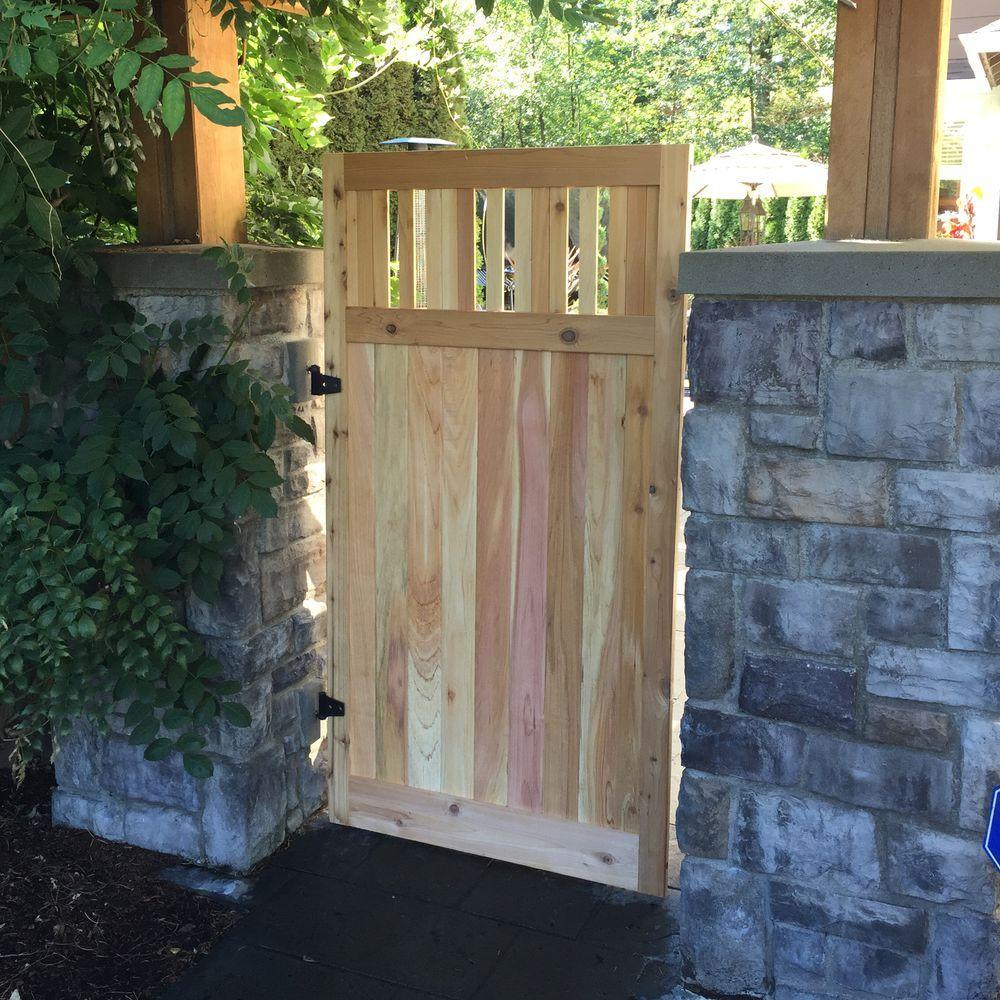 Experience the aroma and long lasting beauty of a Western red cedar fence gate. Cedar gives a feeling of warmth and compliments the natural surroundings, while adding charm to your outdoor living space. Well known for its natural oils, western red cedar resists decay and withstands harsh environments. Constructed with the highest quality, hand selected Western red cedar featuring a flat top vertical lattice design. Its structure is stable, durable, and ready to withstand the elements for years of quality performance. This gate is manufactured using corrosion-resistant fasteners and features tongue-and-groove milled fence boards to help provide privacy. Easy to install and used for many applications residential or commercial. Hinges can be installed on the right or left side. Cedar fence gates are the perfect addition to your fence or arbor project.