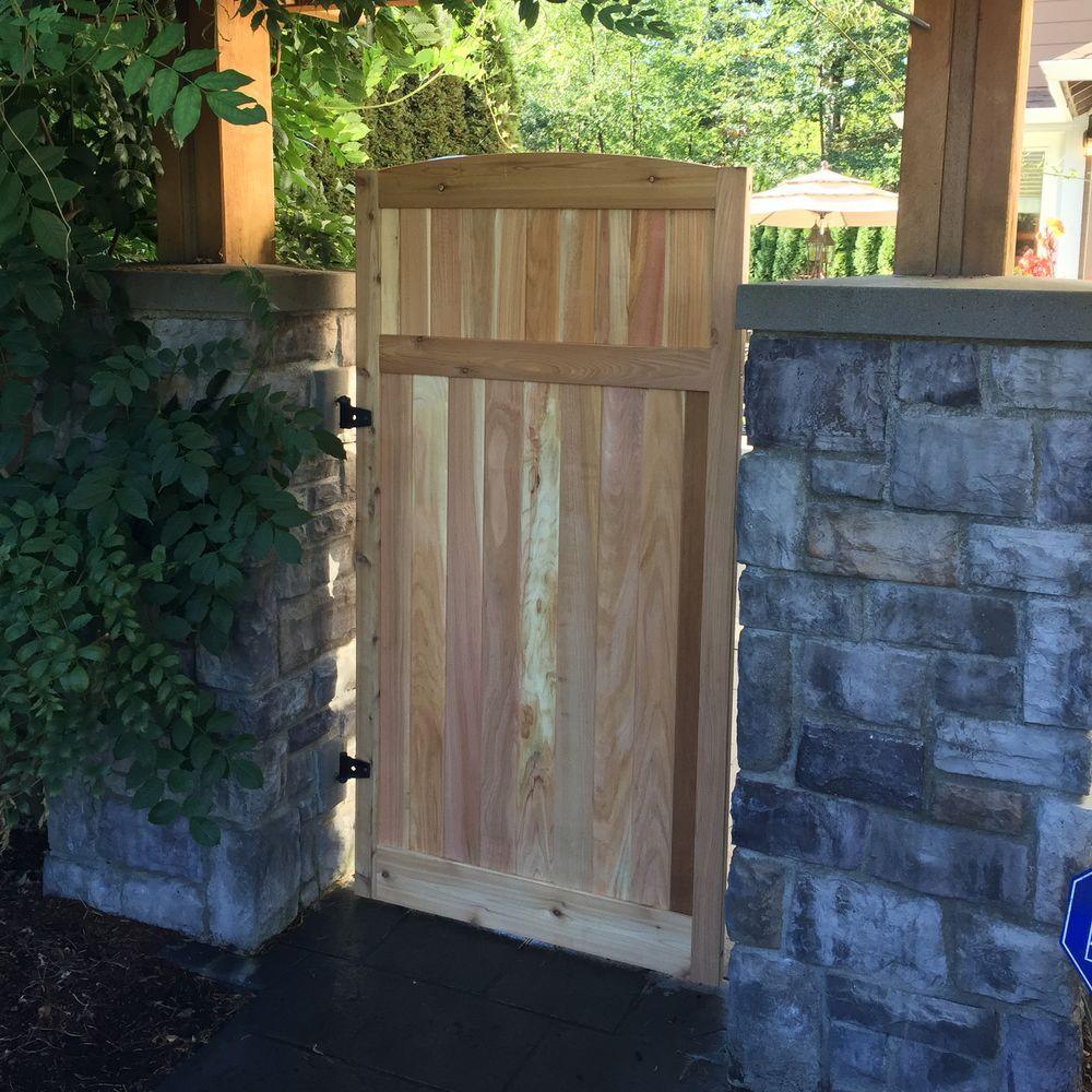 Experience the aroma and long lasting beauty of a Western red cedar fence gate. Cedar gives a feeling of warmth and compliments the natural surroundings, while adding charm to your outdoor living space. Well known for its natural oils, western red cedar resists decay and withstands harsh environments. Constructed with the highest quality, hand selected Western red cedar featuring an arch top solid lattice design. Its structure is stable, durable, and ready to withstand the elements for years of quality performance. This gate is manufactured using corrosion-resistant fasteners and features tongue-and-groove milled fence boards to help provide privacy. Easy to install and used for many applications residential or commercial. Hinges can be installed on the right or left side. Cedar fence gates are the perfect addition to your fence or arbor project.