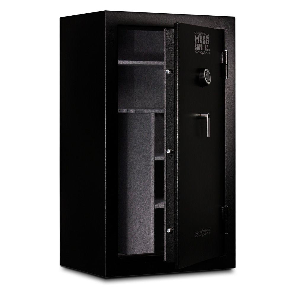 Affordability meets Security with MESA's MGL36E Gun Safe. The safe offers a 30 minute fire rating with burglary resistance. Made from 12-Gauge solid steel plate and equipped with a drill resistant hard plate with spring loaded re-locker, the MGL36E Provides protection from attack. The Electronic Lock provides Security and Convenience for easy code changes. Securely stores up to 36 rifles.