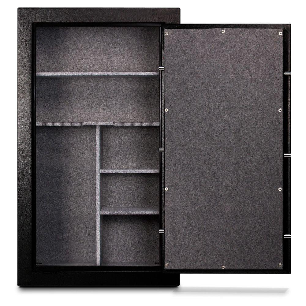 Affordability meets Security with MESA's MGL36C Gun Safe. The safe offers a 30 minute fire rating with burglary resistance. Made from 12-Gauge solid steel plate and equipped with a drill resistant hard plate with spring loaded relocked, the MGL36C Provides protection from attack. The mechanical dial Lock provides Security and Function after an EMP Attack. Securely stores up to 36 rifles.