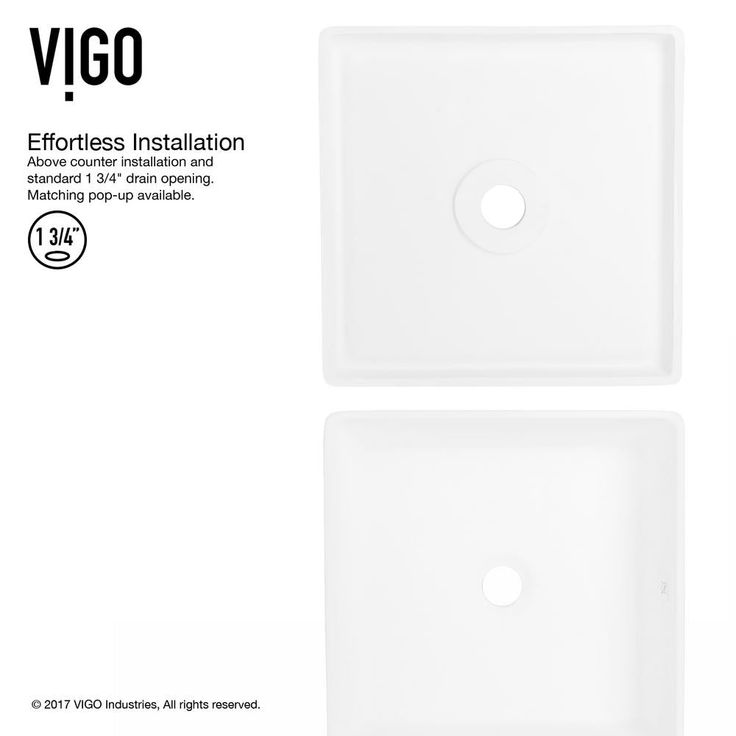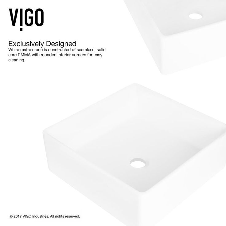 The solid core Matte Stone construction makes the VIGO Dianthus Matte StoneTM Vessel Bathroom Sink an instant staple in your home. Durable and long, lasting, this masterpiece resists scratches, chips, and stains. With a square design and satin-smooth matte white surface, this vessel sink makes a modern and elegant statement in any traditional, transitional, or contemporary bathroom.