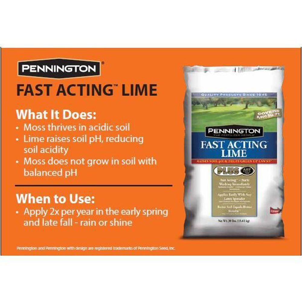 Regular price $19.98Pennington Fast Acting Lime Plus AST goes to work right away to raise your soil pH. Low pH can cause moss and bare spots in your lawn and can encourage weeds to grow. Limestone helps balance soil pH to create a better soil environment for your lawn, which significantly reduces these problems. Pennington 30 lb. Fast Acting Lime Plus AST is more concentrated than regular dolomitic limestone, so you have to use only 30 lbs. to cover 5000 sq. ft. This unique formula combines Advanced Soil Technology (AST) with high-quality lime to maximize the benefit to the soil.