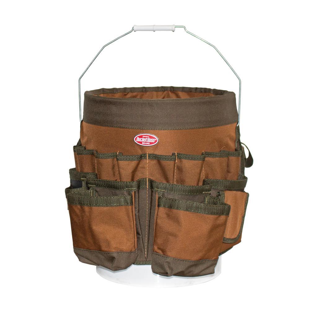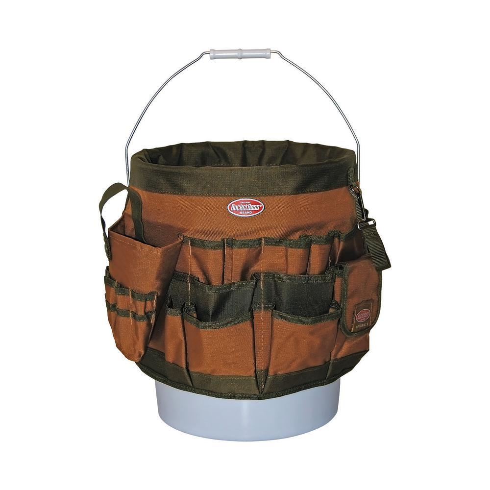 The Bucket Boss 56-Pocket Bucket Tool Organizer gives you the ability to hold plenty of your hand tools in a 5 Gal. bucket. Made of durable poly ripstop/600D poly material and built with 48 exterior and 18 interior pockets, fits any 5 Gal. bucket. There are also 3 interior loops for hammers, drills, pry bars and long tools. Bucket is not included.