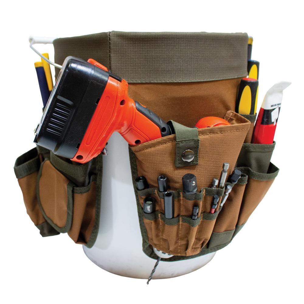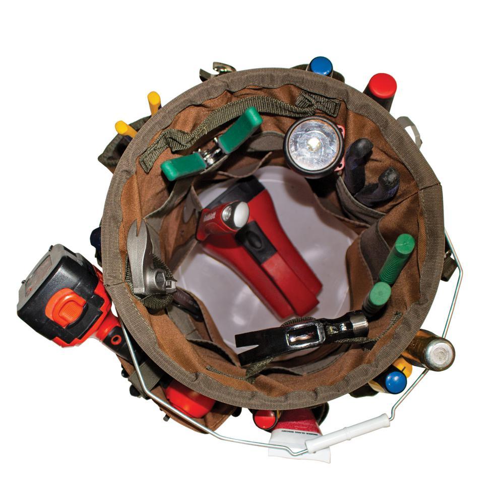 11 in. 56-Pocket Tool Bucket Organizer in Brown and Green