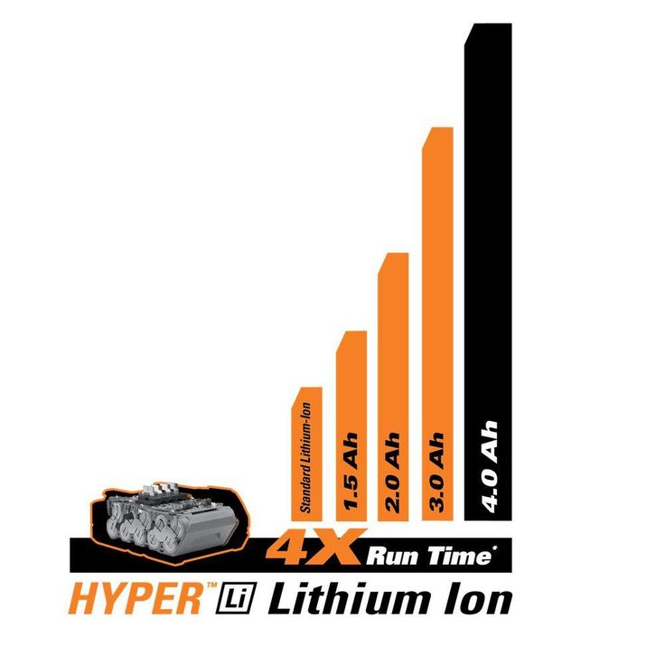 • Up to 4X more run time compared to standard lithium-ion batteries